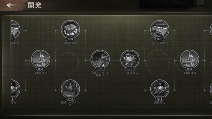 発展させるには食料や物資を確保して、施設を建ててコンテンツを増加させましょう〜