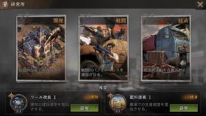 ゲームを進行させると研究ラボが開放され、資源と時間を使って様々なボーナスを得られる。